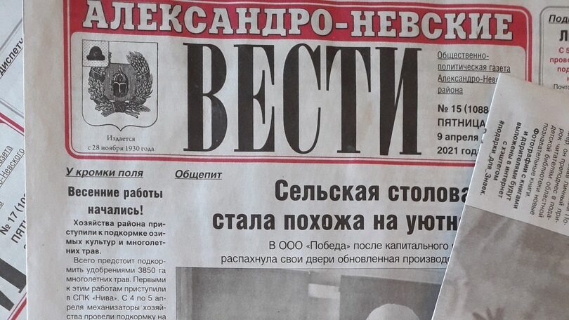 Почтовая стоимость подписки на районную газету «Александро-Невские вести» на 6 месяцев 607 руб. 44 руб.