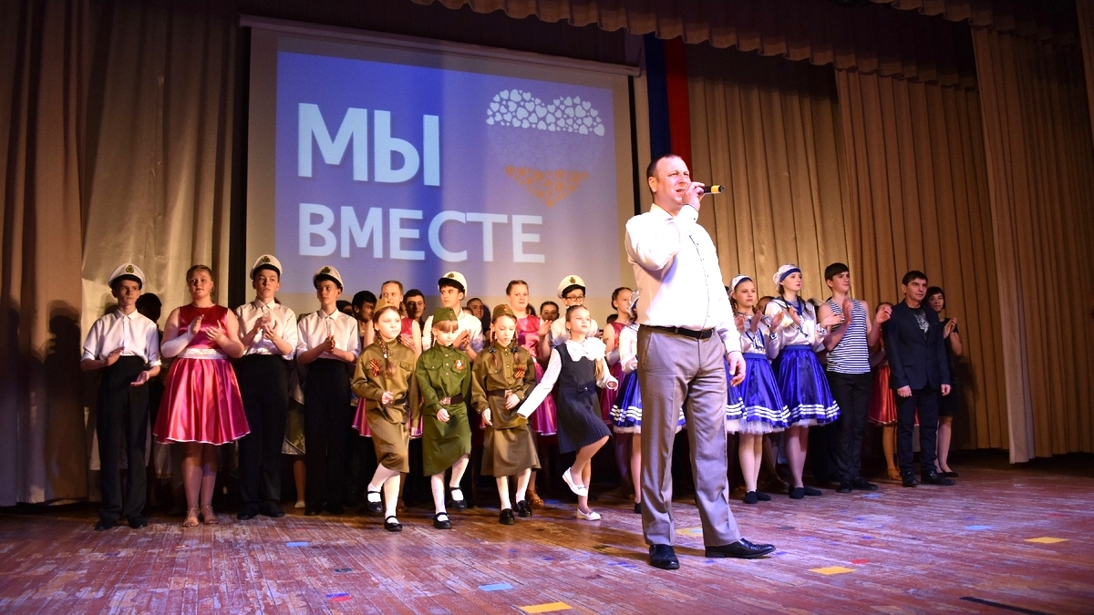 Закончили праздничный концерт песней «Мы вместе», которую зал слушал стоя.