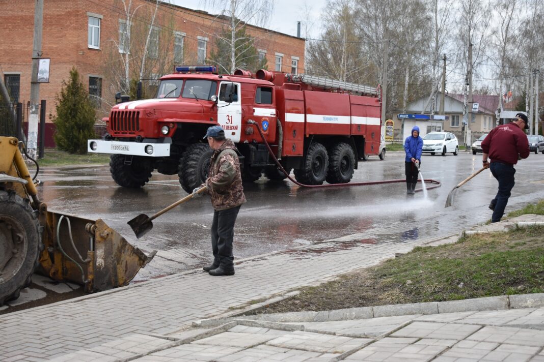 13 апреля на улице Советской устроили генеральную уборку. При помощи пожарной машины очистили асфальтную дорогу от песка.