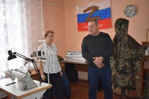 Накануне 8 Марта депутат областной Думы, генеральный директор ООО «Мир» Николай Игнатов приехал в центр волонтерской группы «Ленинский швейбат ZАЛП62», чтобы поздравить женщин с наступающим праздником и оценить результаты их труда по пошиву антидроновых накидок.