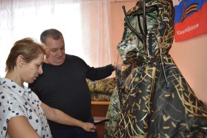 Незадолго до этого Николай Анатольевич поддержал идею пошива противодроновых пончо и в помощь швеям приобрел профессиональную швейную машинку и два рулона специальной камуфлированной ткани. В этот раз он привез с собой две упаковки синтепона.