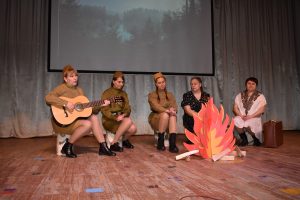 О женщинах-фронтовичках, женщинах-солдатах, которых война научила ненавидеть и убивать, но не разучила любить жизнь и свою Родину, в своей короткой постановке по повести Бориса Васильева «А зори здесь тихие» рассказали воспитатели детского сада № 14 п. Александро-Невский.