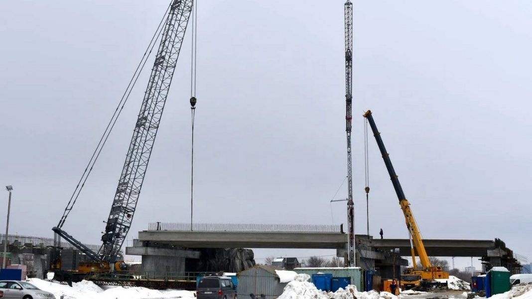 Стройка ведется круглосуточно по обе стороны реки. На объекте трудятся 270 человек, используются 96 машин. Всего предстоит построить 5,8 километра, из которых новый мост составит 1,1 километра.